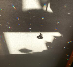 窓辺で輝く虹色のプリズムは、